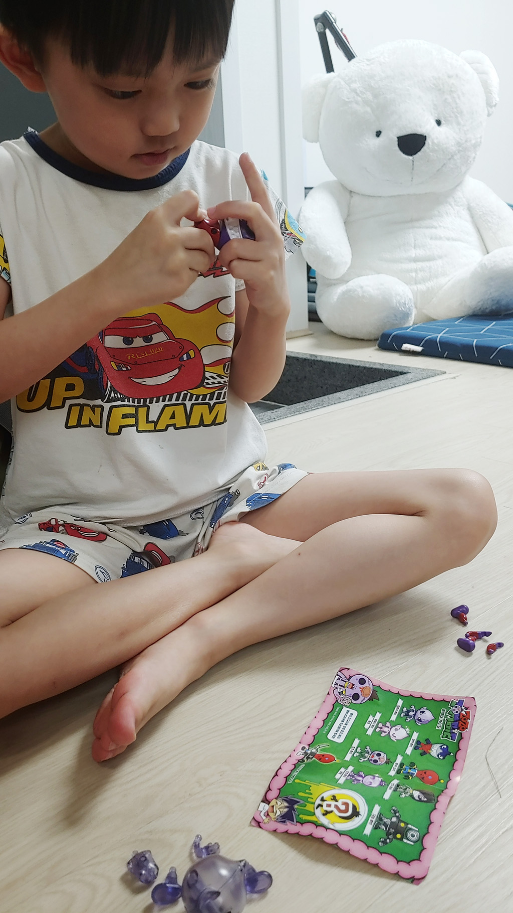 조립하기도 간편하고 캐릭터 디자인도 아기자기하고 예쁘네요. 아이도 참 좋아하구요. 조립 설명서가 별도로 필요없이 바로 몸통에 머리, 팔다리만 잘 껴주면 됩니다. 다리 모양을 잘 조절해주면 바닥에 세울 수도 있어요. 근데 팔다리가 좀 쉽게 분리네요. 좀더 잘 고정이 되면 좋을 것 같아요.