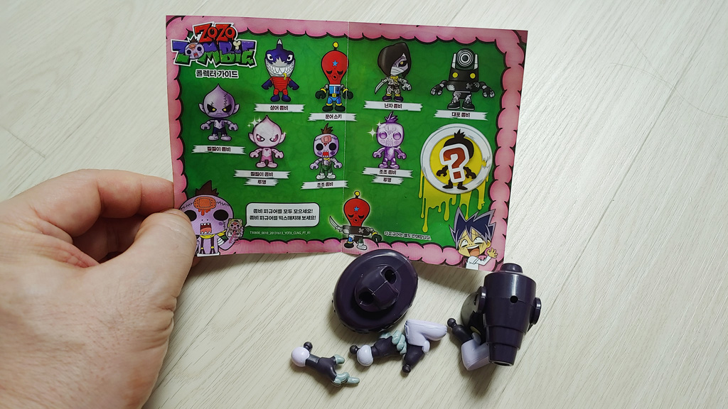 이렇게 3가지 좀비피규어를 조립해 보았네요. TV에서 보던 조조좀비를 좀비피규어로 만날 수 있으니 아이들이 참 좋아할 것 같더라구요. 랜덤피규어이다 보니 여러개 구입하였을 때 같은 좀비피규어가 나올 수도 있겠는데요. 아이가 좀비여화는 꽤 무서워하는데요. 좀비만화는 무서워하지 않네요. 징그러운 것 하나도 없는 정말 귀여운 좀비피규어 입니다.