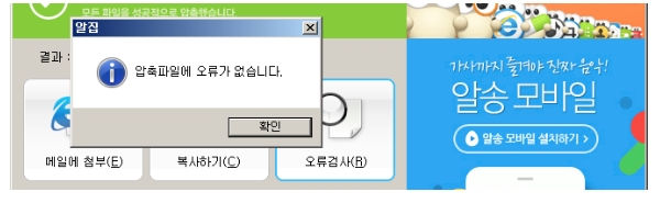 만약 분할압축을 하셨다면 꼭 오류검사를 통해서 문제가 있는지 파악해야 합니다. 그래야 지인에게 전달시 문제가 없겠죠.