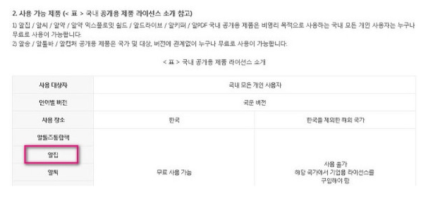 알집 무료 다운로드 이전에 라이선스를 살펴보면 '국내 공개영 제품 라이센스'에서 정보를 확인할 수 있습니다. 국내 비영리 목적으로 사용하는 모든 개인 사용자가 사용 가능한 공개용 제품이에요.