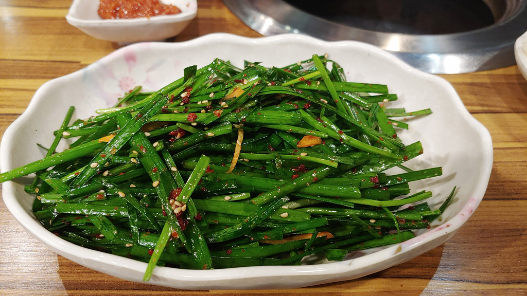 양념돼지갈비를 주문하면 나오는 부추무침....와이프가 좋아하는데 리필요청하면 사장님이 바로 무쳐서 갔다가 줍니다.
