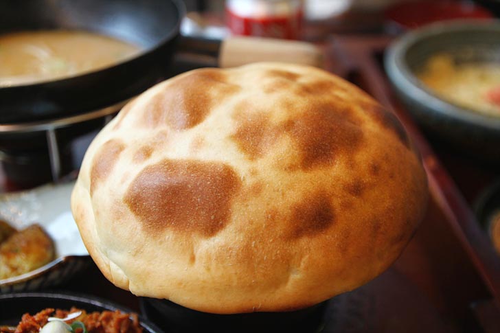 가지조림인 가지 미소는 제가 가지를 그렇게 좋아하진 않지만 오후정에서는 저 혼자 다 먹었답니다. 그리고 옆에 웬 보석 같은 둥근 모양이 보입니다. 이것이 안에는 크림카레가 들어있고 겉에는 바쿠단 빵이 구워진 것입니다. 빵을 찢어서 크림카레에 찍어 먹으면 정말 맛있습니다.