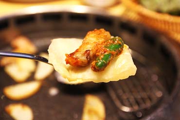 특별한 구운 소금도 찍어먹고..쌈장만 찍어먹기도 하고..매콤한 고추장 소스만 찍어먹기도 하고..묵은지와 구운 마늘과 함께..