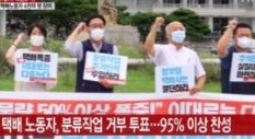 분류 작업은 택배 노동자들이 새벽부터 일어나서 밤늦게까지 배송을 해야만 하는 장시간 노동의 근본이 되는 부분이에요. 하루 13~17시간 중노동의 절반을 택배 분류작업에 매달리면서 단 한 푼의 임금도 받지 못했다고 합니다. 또한 택배 분류작업을 하다가 올해만 7명이 과로사하였다고 하니 정말 안타까운 상황이에요. 그래서 지난 14일~16일 택배기사들 대상으로 분류작업을 전면 안 하겠다고 하는 투표를 진행하였는데 민주노총 택배 연대노조 조합원을 포함하여 4천357명이 참가하여 4천159명 (95.6%)이 찬성하였다고 합니다.