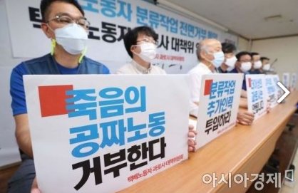 반면에 택배 기사는 최근 3년간 연평균 5.6% 증가하는데 그쳐서 택배기사 수가 택배 물량을 따라가지 못하는 상황이 되었습니다. 올해 택배기사 1인당 월평균 처리물량은 5164 건이고 하루에 256건을 처리해야 하는 살인적인 스케줄이에요. 밥 먹을 시간도 없겠어요. 상황이 이렇게 안 좋다 보니 택배기사님들은 힘들어서 과로사하기도 하였어요. 대책위원회에서는 17일 오전 기자회견을 열고 오는 21일부터 택배 분류작업을 아예 안 하겠다고 선언하였습니다. 아니.. 식품도 있는데 택배 배송을 제때 안 하면 식품 물품은 다 상할 텐데요.ㅜㅜ